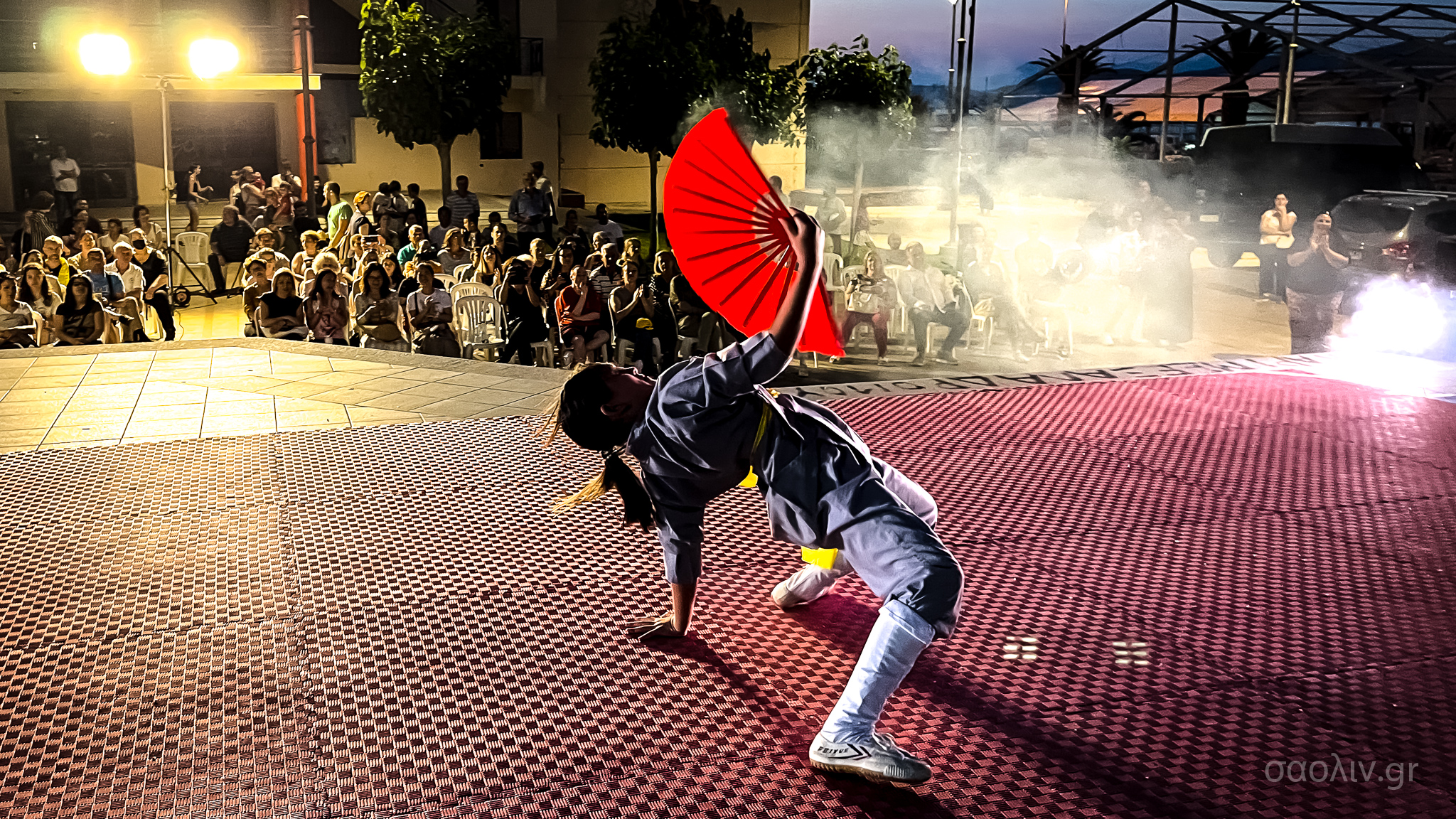 Σε ένα κλίμα άλλοτε μυσταγωγικό, ήρεμο και απαλό και άλλοτε με εναλλαγές, δράσης και κίνησης συνθηκών πραγματικής μάχης, για μιάμιση ώρα, μαθητές και ο δάσκαλος Χρήστος Παναγόπουλος, μετέφεραν το πνεύμα του Σαολίν Κουνγκ Φου & του Τάι Τσι κατευθείαν στις καρδιές των θεατών που καθηλωμένοι παρακολούθησαν με απόλυτη προσοχή.